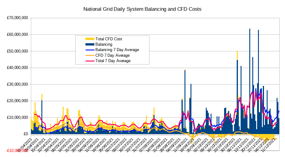 However, it is balancing costs caused by failures of wind generation and capacity shortages that have really soared in recent months, as shown in this chart, which includes the CFD payments to show their relative importance.