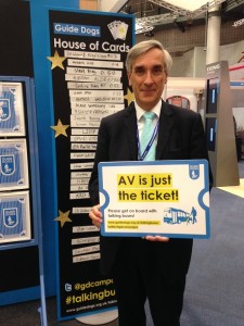 The Rt Hon John Redwood MP visting the Guide Dogs stand at Conservative Party Conference. Image taken on 29 September 2014