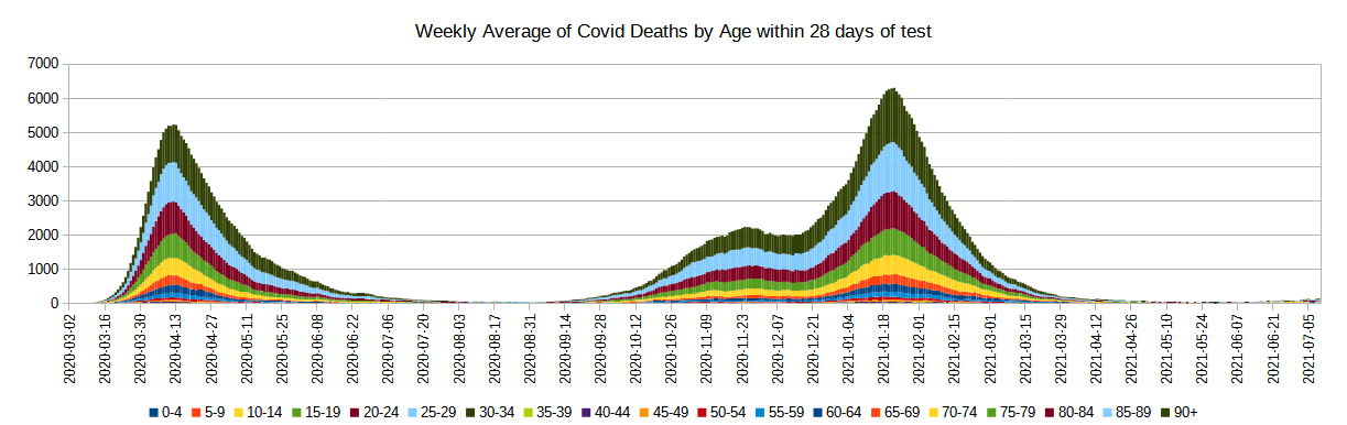 Deaths by age cohort – close to zero since the vaccination of the elderly